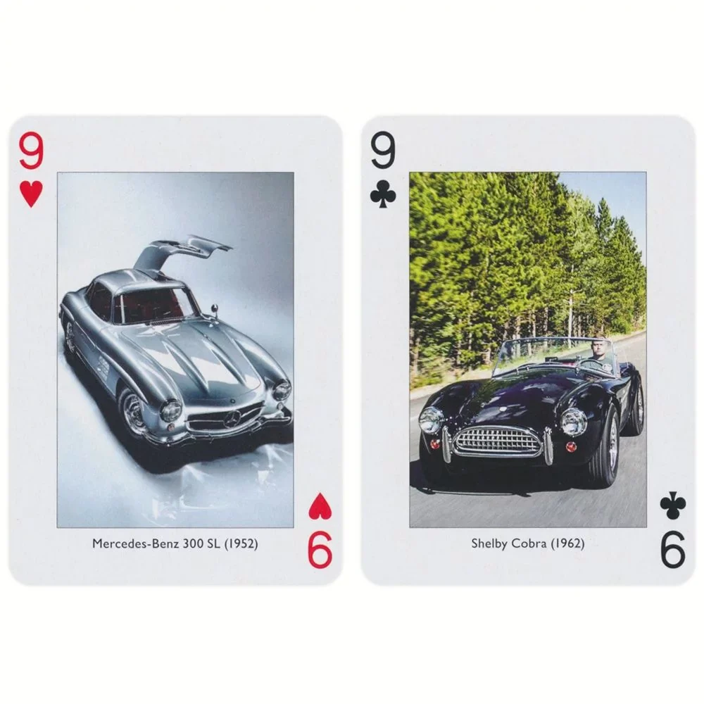 Each card showcases a stunning image of a classic car, turning your card game into a visual journey through automotive history.